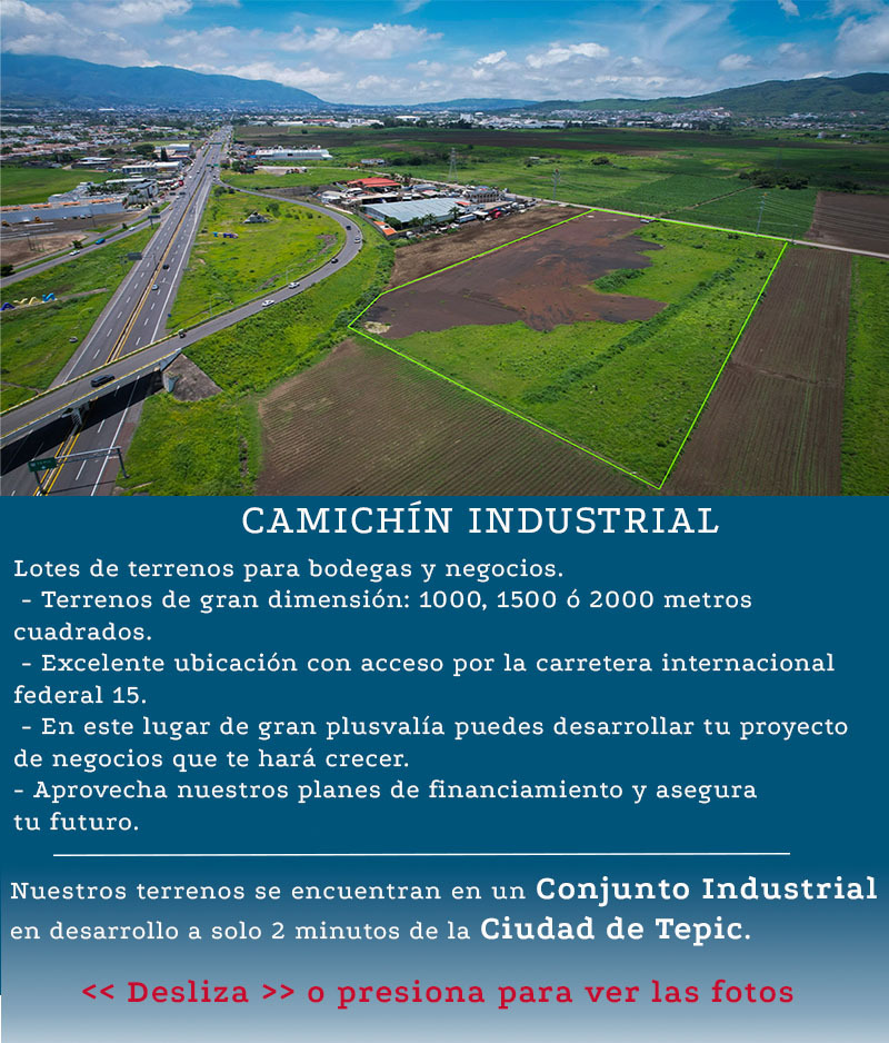 Terrenos de gran dimensión para bodegas y negocios. Aprovecha nuestros planes de financiamiento.
