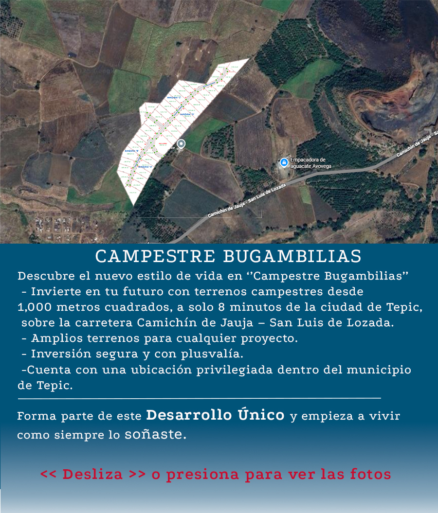 Invierte en tu futuro con terrenos campestres desde 1000m2 a 8 minutos de la Ciudad de Tepic.